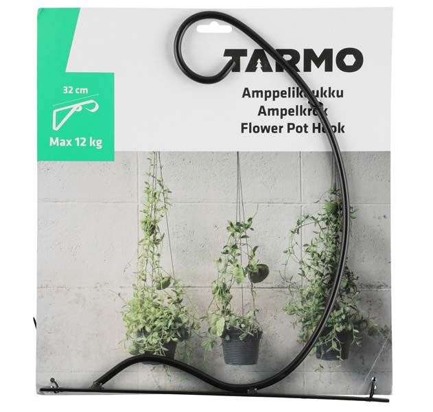 En vacker svart ampelkrok för upphängning av ampelväxter vid en vägg. Gröna växter ger ett mer ombonat inttryck hemma och renar även luften. Om du älskar att ha växter hemma men har fyllt alla fönsterbrädor kan du börja hänga upp dem med hjälp av ampelkrokar istället. Ampelkroken har en stilren böjd design och passar även utmärkt att ha utomhus. Den tål en maxvikt på 12 kg.