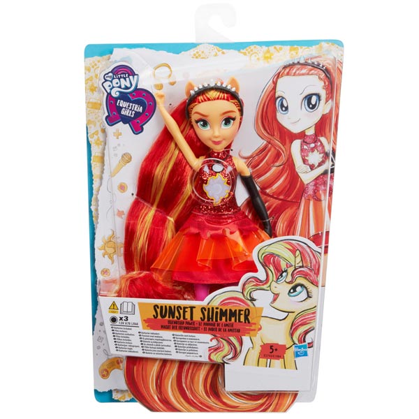 Allt blir roligt med My Little Pony Equestria Girls Friendship Power-dockorna! I det här setet får du Sunset Shimmer som kan sjunga sånger, säga fraser och visa färgglada ljus om du trycker på hennes överkropp. Dockan har fem böjbara leder, snyggt stylat hår och självklart färgstarka cutiemark-inspirerande kläder!Komplettera gärna med de andraMy Little Pony Equestria Girls Friendship Power-dockorna Rainbow Dash och Twilight Sparkle!