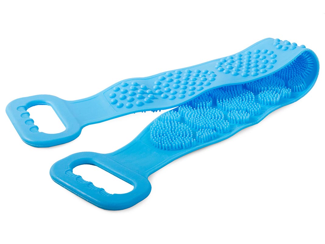 En exfolierande badrem för rygg/kropp från Verk Group.Med hjälp av denna exfolierande badrem kan du tvätta ryggen eller andra delar av kroppen. Den är tillverkad av silikon som är behagligt mot kroppen och gör att badremmen även kan användas för massage. Med badremmens många pluppar skrubbar den ordentligt och ökar din blodcirkulation. Den har mycket bekväma handtag som gör den lätt att använda och den är dessutom mycket lätt att rengöra efter användning.