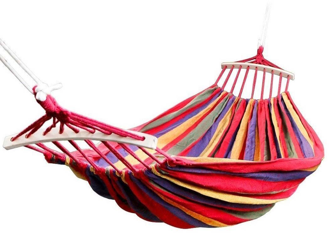 Hängmattan är tillverkad av högkvalitativa material och har två stabila träramar. Hängmattan är bevkäm att ligga i och går att tvätta i tvättmaskin om den blir skitig. Hängmattan är mycket enkel att sätta upp och den tar väldigt lite plats om den behöver tas ned och förvaras. Den tål en maxvikt på 150 kg.