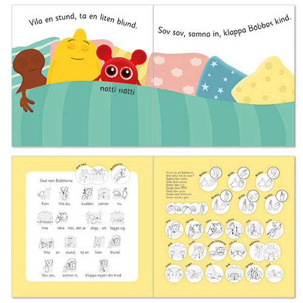 En fin godnattsaga med Babblarna baserad på Babblarnas vaggvisaKom lilla du, kudden väntar. Det är kväll och dags att sluta läsa, leka, klättra och busa. Babblarna kryper ner i sängen en efter en, och barnet hjälper till att natta dem. Texten i boken baseras på Babblarnas vaggvisa, så det går också bra att sjunga bokens text om man vill.Babblarnas nattningsritual ger plats för barnet att gissa, fylla i och att själv natta figurerna. Sen är det dags att somna själv också förstås. Natti natti, god natt och sov gott.I bokens sista uppslag finns det teckenillustrationer så att man lätt kan lära sig att läsa boken med tecken också.