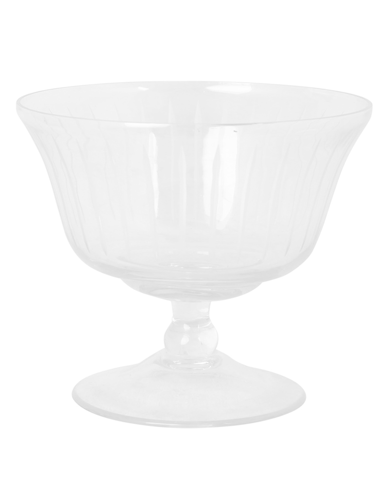 En vacker, liten skål i glas med etsade ränder, från Strömshaga. Skålen är tillverkad av 50-60% återvunnet glas.Skålens breda form gör att du kan använda det som en skål för att servera läckra desserter i eller för att förvara frukt, nötter eller godis i. Denna vackra skålkommer att göra din dukning komplett eller göra sig fin som en vacker men praktisk inredningsdetalj som skål på köksbänken, på bordet, på hyllan, i skåpet och mycket mer.