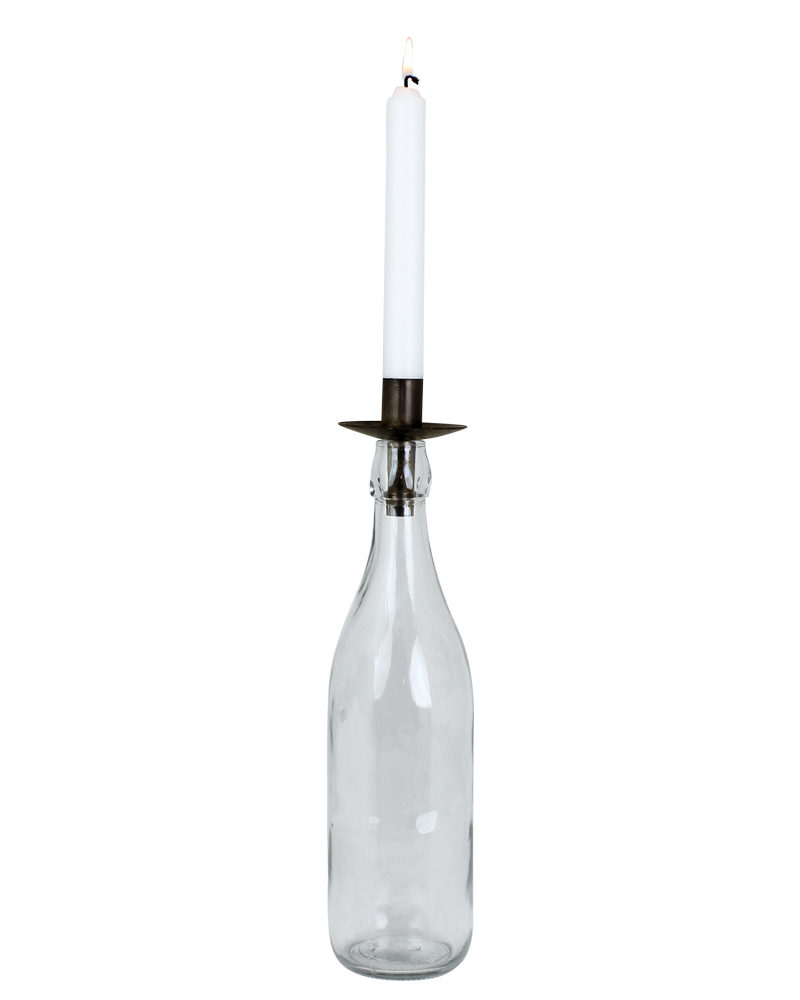 En vacker ljushållare i järn med en antiksvart finish för kronljus, från Strömshaga. Med denna vackra ljushållare kan du återanvända fina gamla flaskor och göra om dem till vackra ljusstakar.Ljushållaren sätts ner i flaskans öppning och vilar stadigt på manschetten. Den långa staven ser till att ljushållaren inte kan tippa ur flaskan.Använd denna ljushållare för att skapa en kreativ och personlig inredningsdetalj.