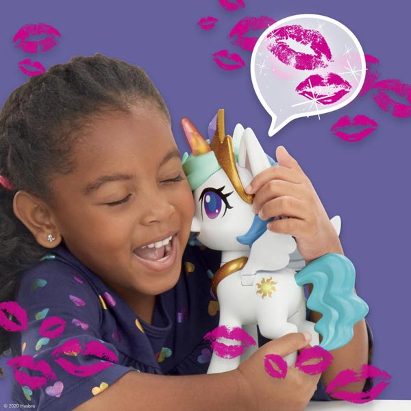 Den här söta enhörningen kommer att älska att umgås med dig då hon reagerar när du skickar henne massor av magiska kyssar! Ju fler du skickar henne, desto mer reagerar hon. Hon kan flaxa med vingarna, röra på huvudet, få sitt fina horn att lysa och till och med skicka tillbaka en kyss till dig! För att aktivera henne är det bara att trycka på hennes horn vid tiaran. Det medföljer en trolldryck som du kan öppna och se vad du får! I trolldrycken finns tre överaskningar i form av accessoarer.