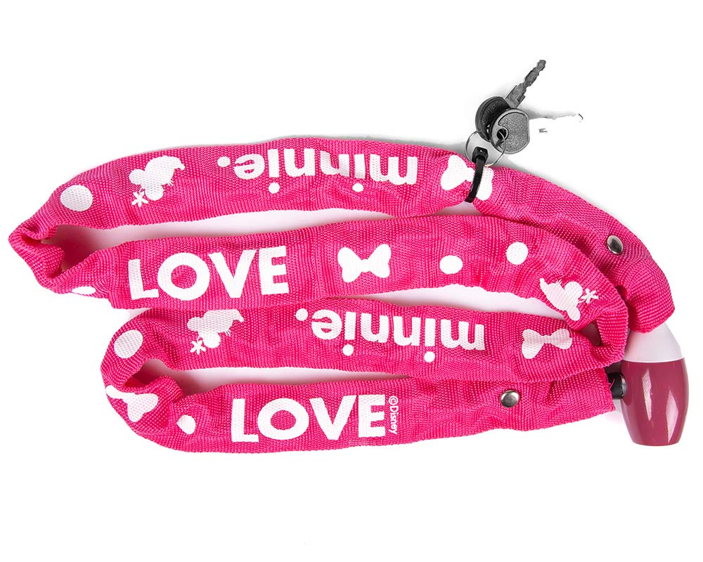 Ett rosa, robust cykellås med motiv från Disney Mimmi Pigg.Detta robusta, högkvalitativa cykellås kommer att hålla barnets cykel säker från tjuvar. Det har en längd på 120 cm och det medföljer två nycklar till låset. Detta cykellås är väderresistent, hållbart och slitstarkt.Det kraftiga textilöverdraget skyddar barnets cykel mot lackskador. Med detta cykellås kan barnet låsa fast cykeln i cykelställ, stolpar och staket.