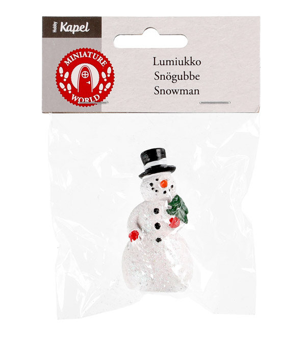 Julen är lika med pyssel och det brukar vara mycket populärt att skapa egna miniaryrbyggen med jultema såsom tittskåp, inreda dockskåp med juliga dekorationer eller skapa juliga miniatyrlandskap. Den här söta glittrande snögubben är mycket liten och passar perfekt in i olika juliga miniatyrbyggen.