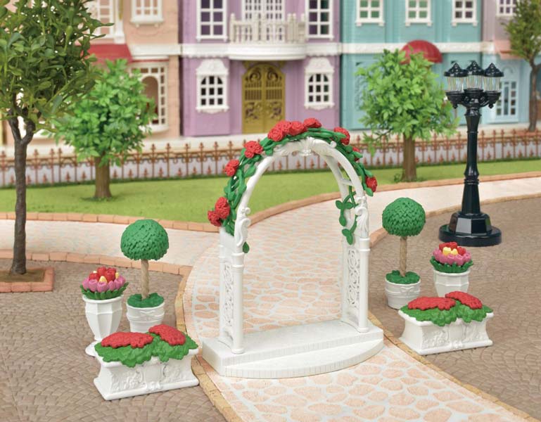 Sylvanian Families är söta samlingsföremål och leksaker för barn!I det här setet får du ettTrädgårdsset med blomstervalv från Sylvanian Families Town Series! Med detta set kan hela din Sylvanian-stad dekoreras vackert!I setet ingår en valvport och 6 planteringskrukor.