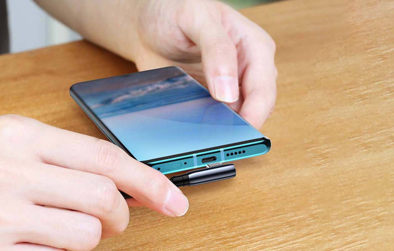 Kabelns USB-C-kontakt är monterad i 90° vinkel så att den inte sticker ut och kommer i vägen när du använder din smartphone.Kabeln kan laddas med upp till 40W effekt och stöder Huawei SuperCharge. Med den kan du ladda din Huawei P30-smarttelefon till 74% på bara cirka 30 minuter! Produkten är även kompatibel med andra telefoner med snabbladdning som till exempel Honor Magic eller Xiaomi.