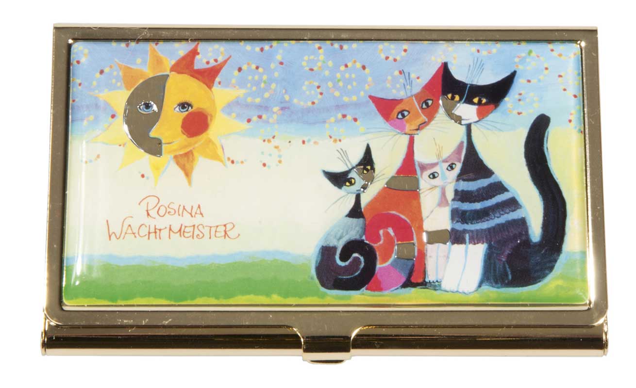 I denna vackra korthållare kan du förvara dina visitkort eller andra viktiga kort såsom bankkort, busskort osv. Fodralet är av metall. Hållaren är perfekt att ha i väskan när du ska iväg på ärenden, resa eller utflykt. Det fina motivet på fodralet heter ”Momenti di felicitá” och är målat av den skickliga konstnärenRosina Wachtmeister.