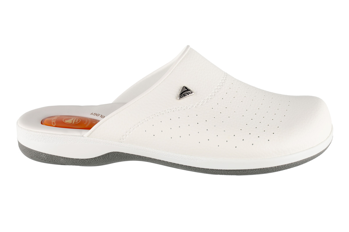De perfekta tofflorna för rehabilitering av smärta i hälen!Dessa vita herrtofflor i storlek 44 är utformade för dig som söker en hög komfort och stöd för dina fötter men särskilt för dig som behöver stödja rehabilitering av smärta i hälen. Tofflorna har ett bekvämt memory foam och gelsystem som ser till att rehabilitera smärta i hälen. Tofflorna har en mjuk poluyretangelkudde i det övre lagrets häl på skorna som återupplivar hälen. Memory foam i det nedre lagret formar sig efter hälen och håller extra hög komfort under användning. Tofflorna har även en fast sula med halkmotstånd och andas så att fötterna inte känns instängda.
